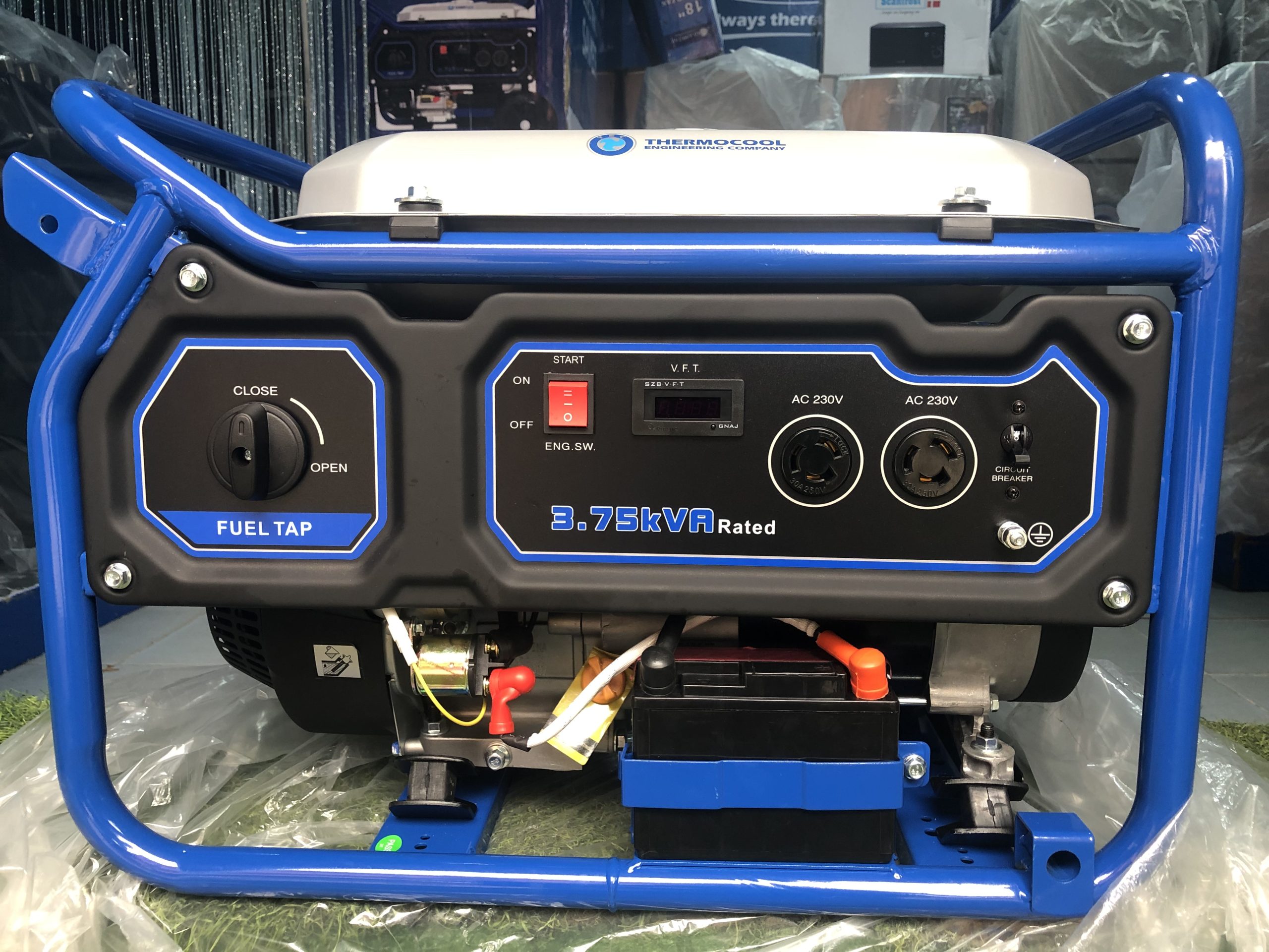 Hustler 4000ES. 3.75kVA/3.0kW. Single phase petrol generator which comes with free Engine Oil